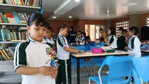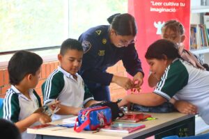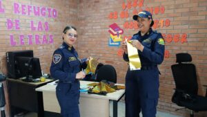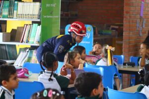 Durante la primera semana de diciembre, en las actividades de lectura y acercamiento a la biblioteca escolar, contamos con acompañamiento del Cuerpo de Bomberos Voluntarios – Estación Cabo José Castañeda del municipio de segovia.